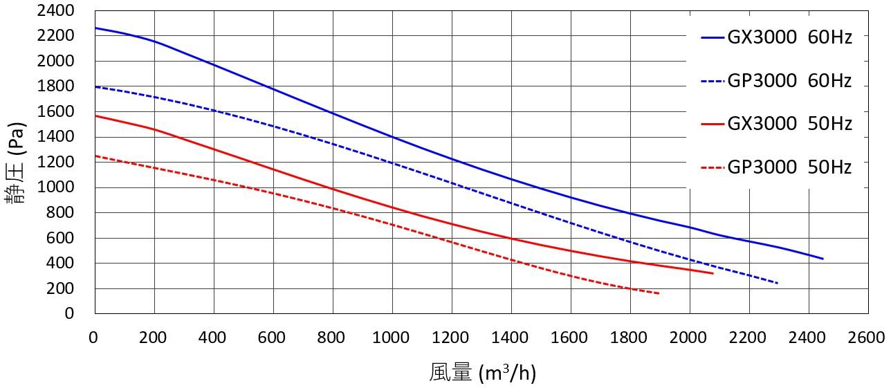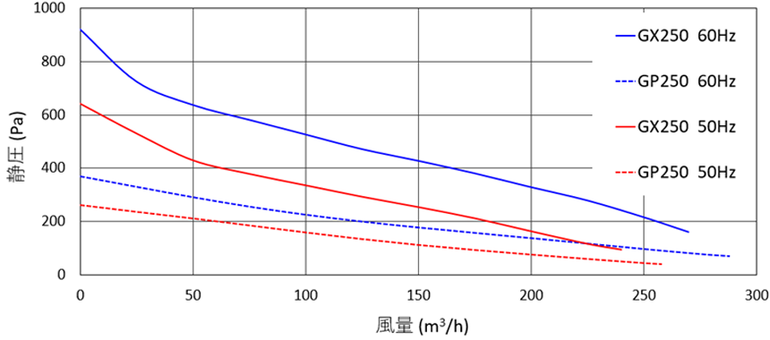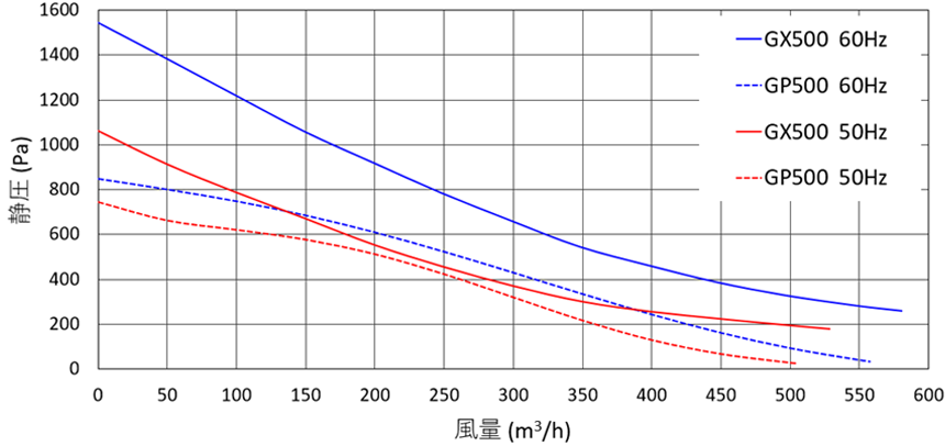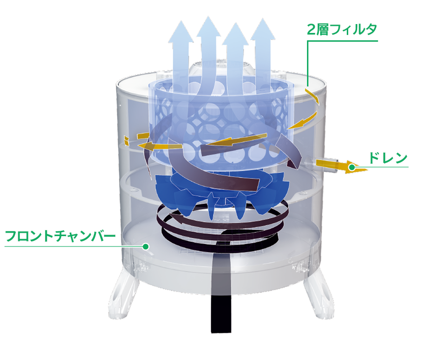 GX1000は同等サイズの他社製に比べ、風量の減少率が低い結果となりました。これは、リアフィルタ手前のサイクロンによるドレン排出システムの効果により得られた結果です。