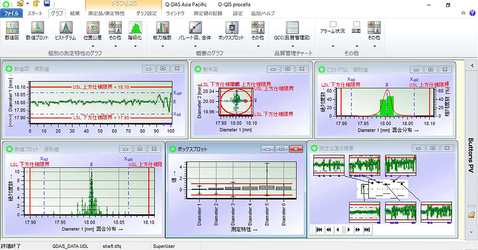 ・測定した測定機の情報(校正日、使用マスタ、温度条件等)も測定データに紐づけ可能